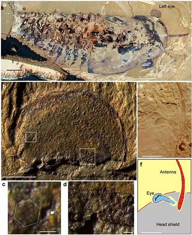 例如,灰姑娘虫拥有已知最早的复眼。在高倍显微镜下,灰姑娘虫的复眼居然由两千多个小眼组成, 并具有相对大的小眼组成的敏锐带,说明其精细的神经结构也已演化到惊人的阶段,揭示了寒武纪早期的节肢动物已经拥有高度发达的视力。它像螃蟹那样,眼睛可以收缩,也就是说在睡觉时,眼睛能够自动收缩进头甲里。而在需要用眼睛时,像是有个操作杆作支撑的眼睛就可以大幅度转动。现代螃蟹的小眼只有一千个左右,灰姑娘虫或许比现代的虾和螃蟹的视力要好得多。