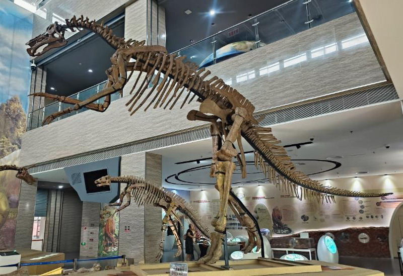 图3 陈列于山东莱阳白垩纪国家地质公园博物馆的杨氏莱阳龙成年和幼年个体骨架